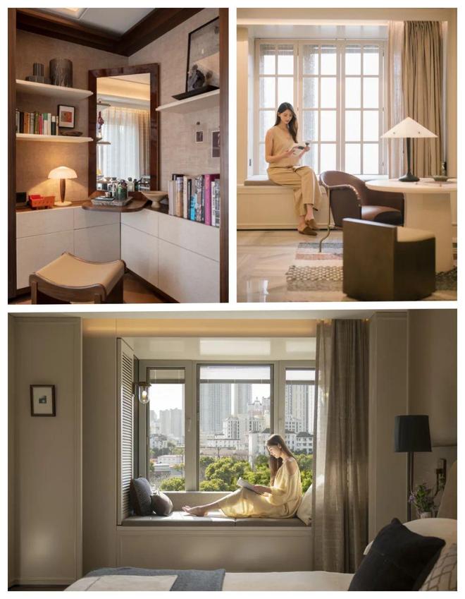 南次卧可以作为卧室,也可以像样板房这样,与主卧打通做成一个套间书房+专属梳妆台,也可以作为独立的卧室使用。