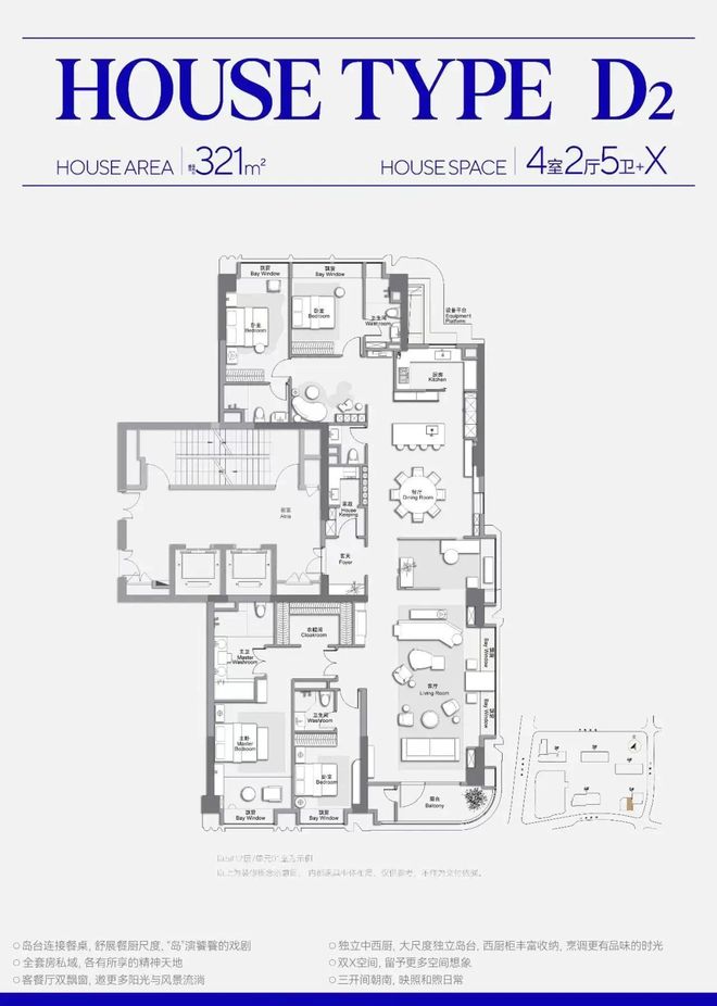 整体4+1房配置,不仅带独立储藏间和家政间;主卧更是带双衣帽间+双台盆的豪华套房;也可根据家庭结构随时更改室内功能性。