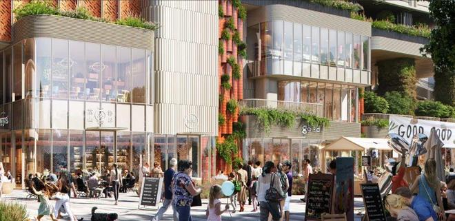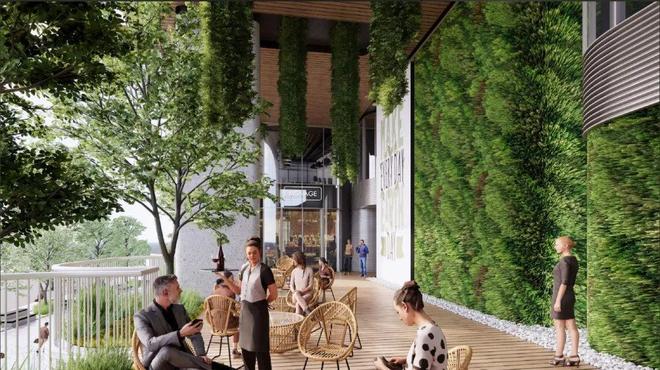 项目的食集也将对标阿姆斯特丹市集,在屋顶上打造天窗,在屋檐中留有特色城市观景台,在屋檐下构筑自然植物源,形成以人为中心,与绿植共处的社交空间。