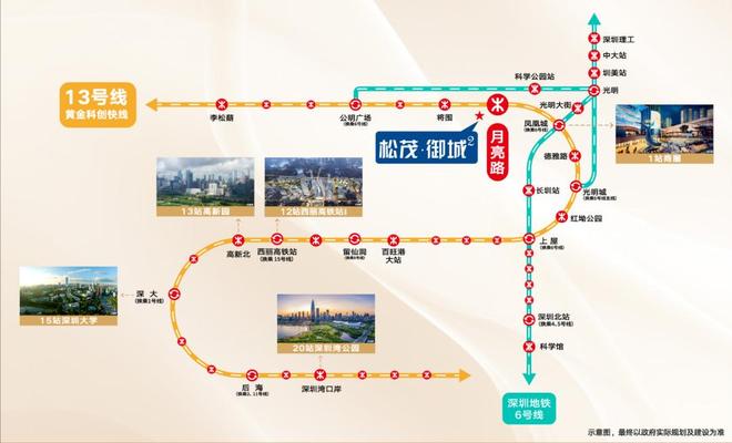 13号线号线年底开通)月亮路站(在建)直线米,距将围站(在建)直线站进南山,一线直达南山科技园、深圳湾 口岸。13号线正式进入列车调试阶段,向下一步通车试运营迈出了关键性一步。