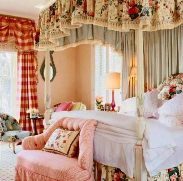 在他设计的空间里充满了枕头、花边、蝴蝶结、褶皱等装饰,他用这种感觉和色调创造了更具有独特性的美国Style的内饰。他是一位深受美国中产阶级喜爱的英国乡村别墅风格的伟大诠释者。