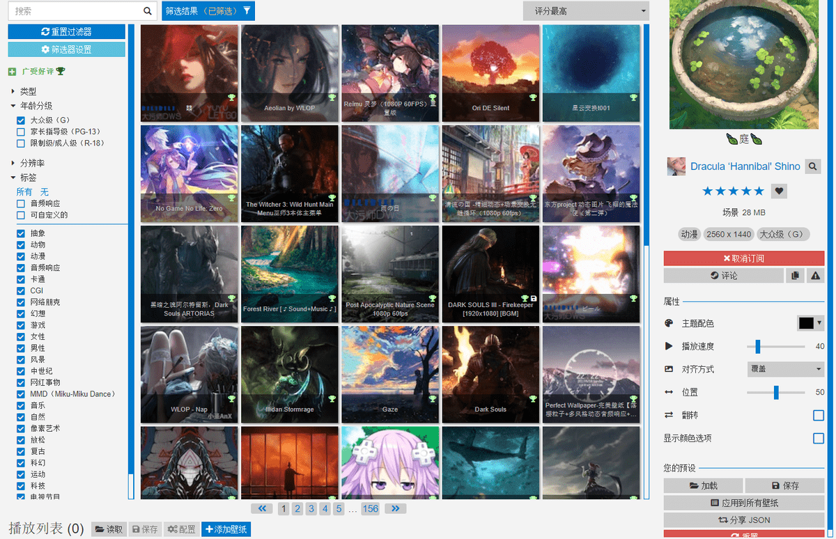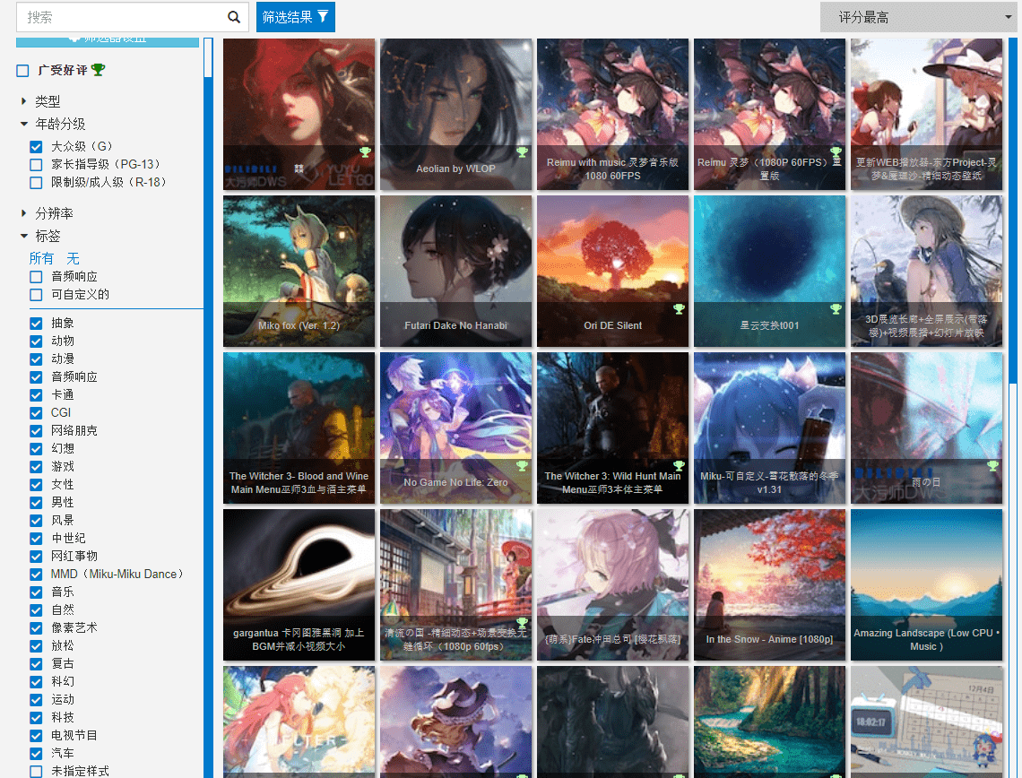 此外,多达26种的详细分类可以让你更方便快捷的找到自己想要的壁纸,悄悄告诉你个秘密,Wallpaper Engine还可以选择年龄分级嗷~最为方便的是这款软件是支持开机自启的,平常的话完全不需要搭理,也不会像其他软件一样会不断的在桌面添加一些图标什么的,更不会自动帮你把整理好的桌面整的乱七八糟的。当你需要它时,它一直在每当你不需要它时,完全感受不到它的存在,这也正是Wallpaper Engine能够在30万条评价中收获98%好评的原因所在。