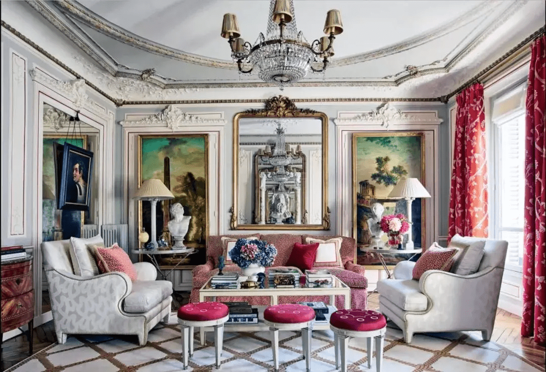 Mario Buatta,美国室内设计师之一,擅用色彩缤纷的印花布料作为室内装饰的基调,是美国设计界的一个传奇。