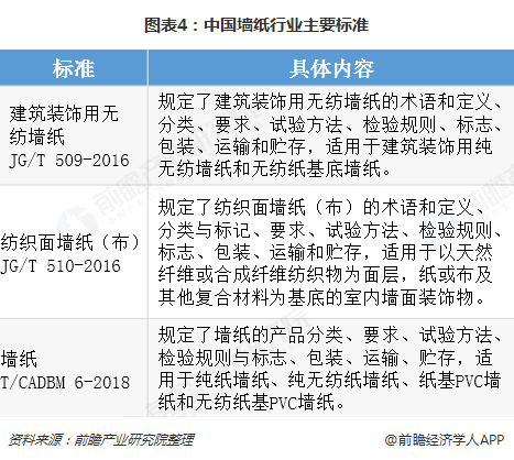 根据中国建筑装饰装修协会墙纸墙布分会的数据显示,目前我国墙纸行业产能为15亿卷,而年供应量不足3.5亿卷,行业内产能过剩十分严重,企业间产品同质化、低价化竞争问题严重,带来了行业盈利能力的明显下滑。为了提高产品质量,树立行业内的口碑,我国墙纸行业在2017年发布了《建筑装饰用无纺墙纸标准JG/T 509-2016》和《纺织面墙纸(布)标准JG/T 510-2016》,2018年发布《墙纸T/CADBM 6-2018》,不断完善行业标准体系,推动行业的健康发展,实现提质增效。