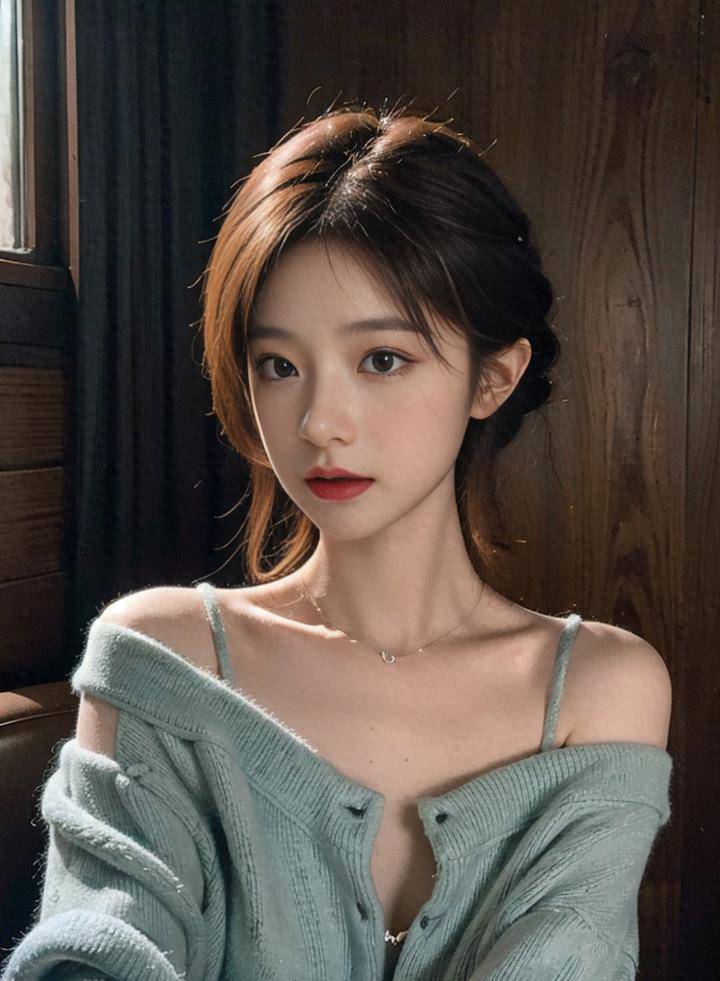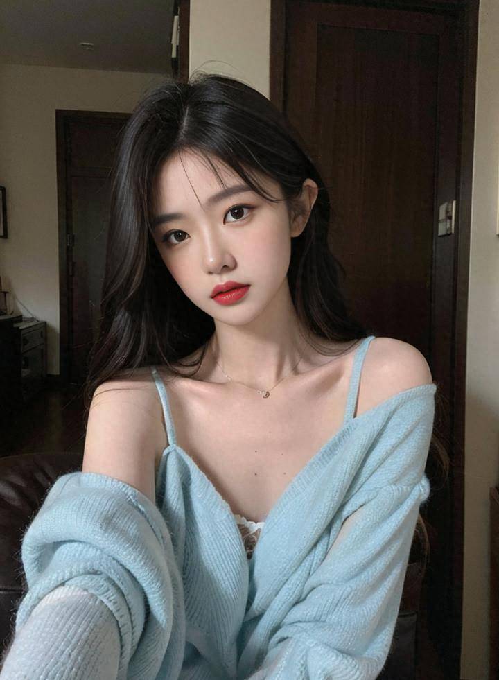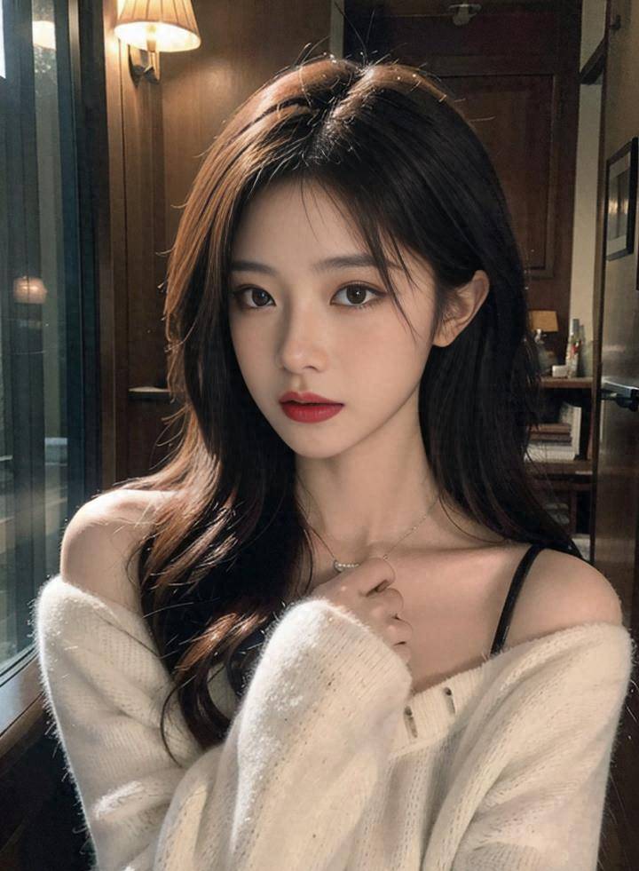 在室内柔和的光线下,她的皮肤显得格外细腻光滑。每一个细节都强调她的青春和活力,让人为她着迷。她的嘴唇微微张开,仿佛邀请你进入她的世界。