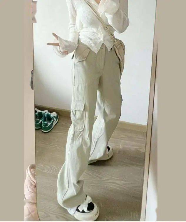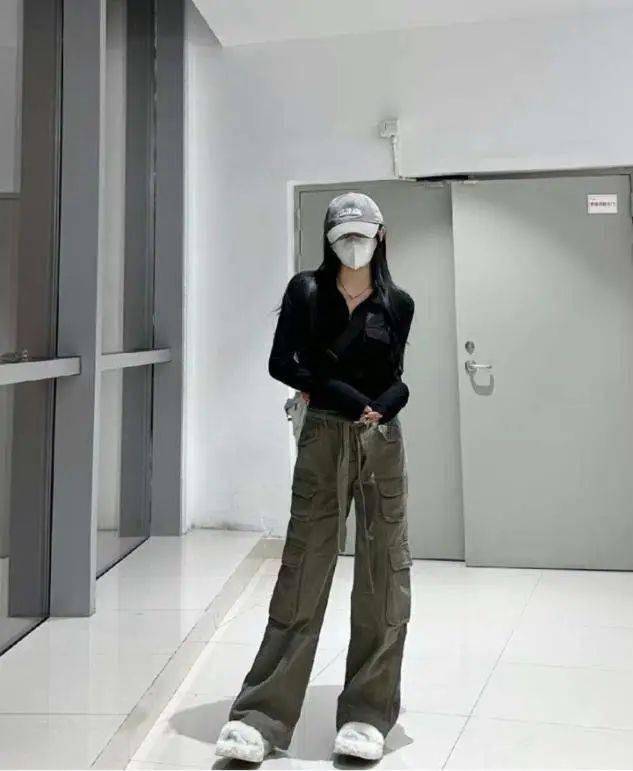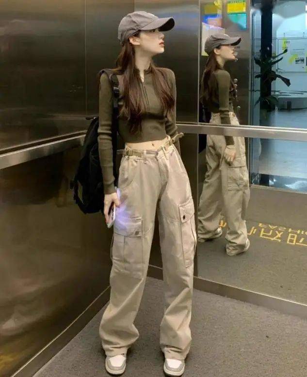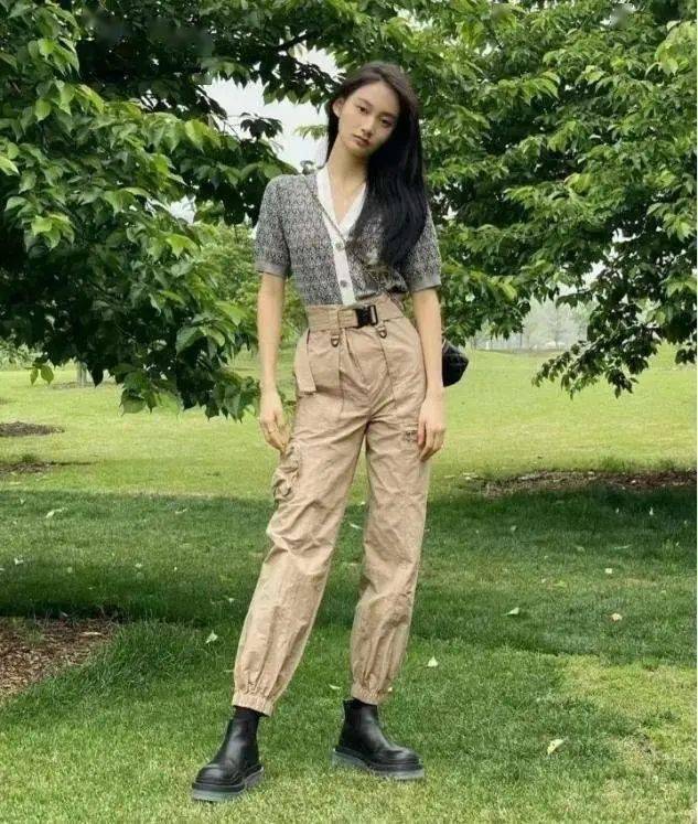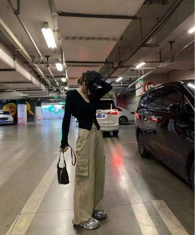 廓形设计的工装裤,拥有足够的遮肉效果,高腰款式的点缀,可以轻松划分出上短下长的比例,怎么穿都显高级。