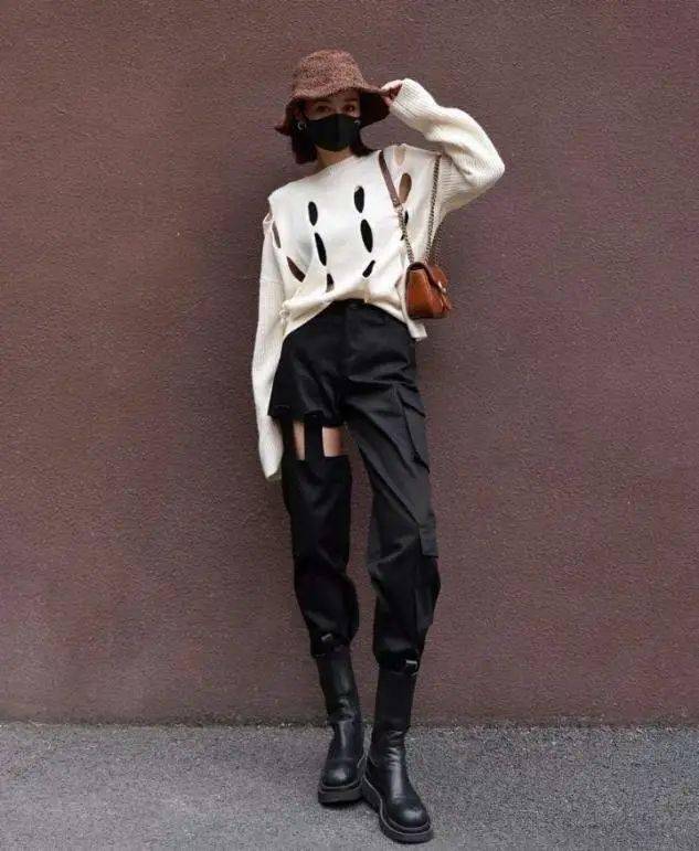 如今,流行的针织衫叠穿设计,还融入了诸多镂空和露肤的打扮,搭配阔腿工装裤,完全不一样的反转时尚感。