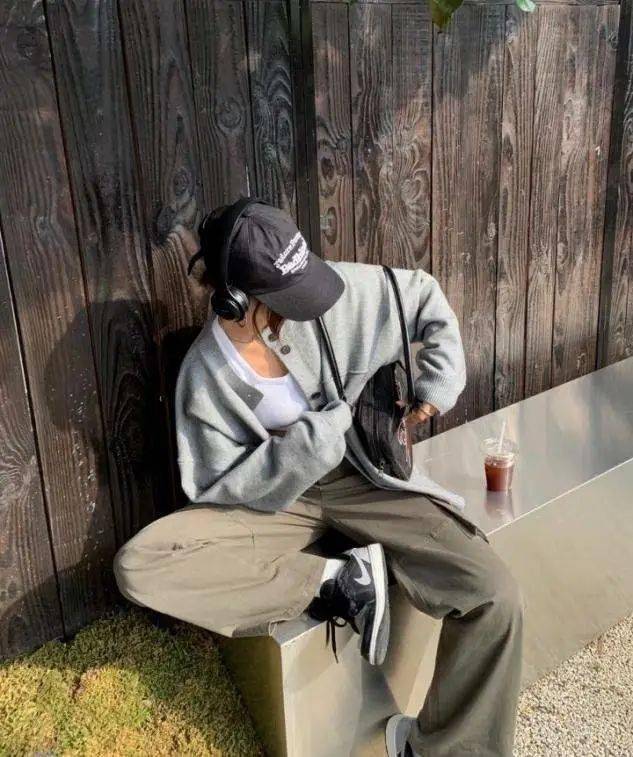 灰色系针织衫,拥有小众色彩先入为主的优势,利用面料厚度轻薄的针织底料为衬,组合棕色系的工装裤,就可以穿出相当完美的干练休闲气场。