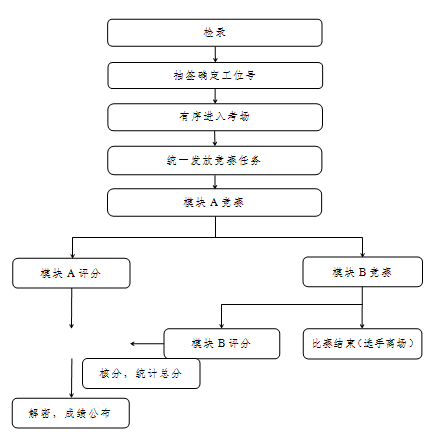 4.参赛选手按序依次抽签确定参赛编号,即比赛工位号,然后在指定区域等待;在现场裁判的指挥下有序进入赛场,参赛选手按照抽签结果在指定赛场及机位对号入座。