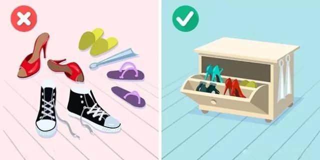 一家人的鞋子全都散落在门口,一进门就会给人家里乱糟糟的感觉。不如在玄关处装一个鞋柜,既能起到装饰的作用,还能把鞋子和杂物通通收进去,给家里留出更多的空间。
