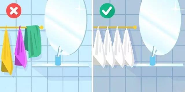 为什么电视剧里的卫生间看上去整洁美观逼格高,那是因为他们的洁具用品色调一致,不像自己家用的洗脸毛巾、红色的洗澡毛巾等等。毛巾全都换成纯色的,看上去更整洁,档次也立马上去了。