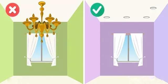 大吊灯看上去确实富丽堂皇、高大上、很洋气,但是也仅仅适合挑高的楼层或者大别墅。小户型一般层高都低于2.8m,还是乖乖装吸顶灯或者筒灯吧,吊灯只会让你家客厅再缩水一倍。
