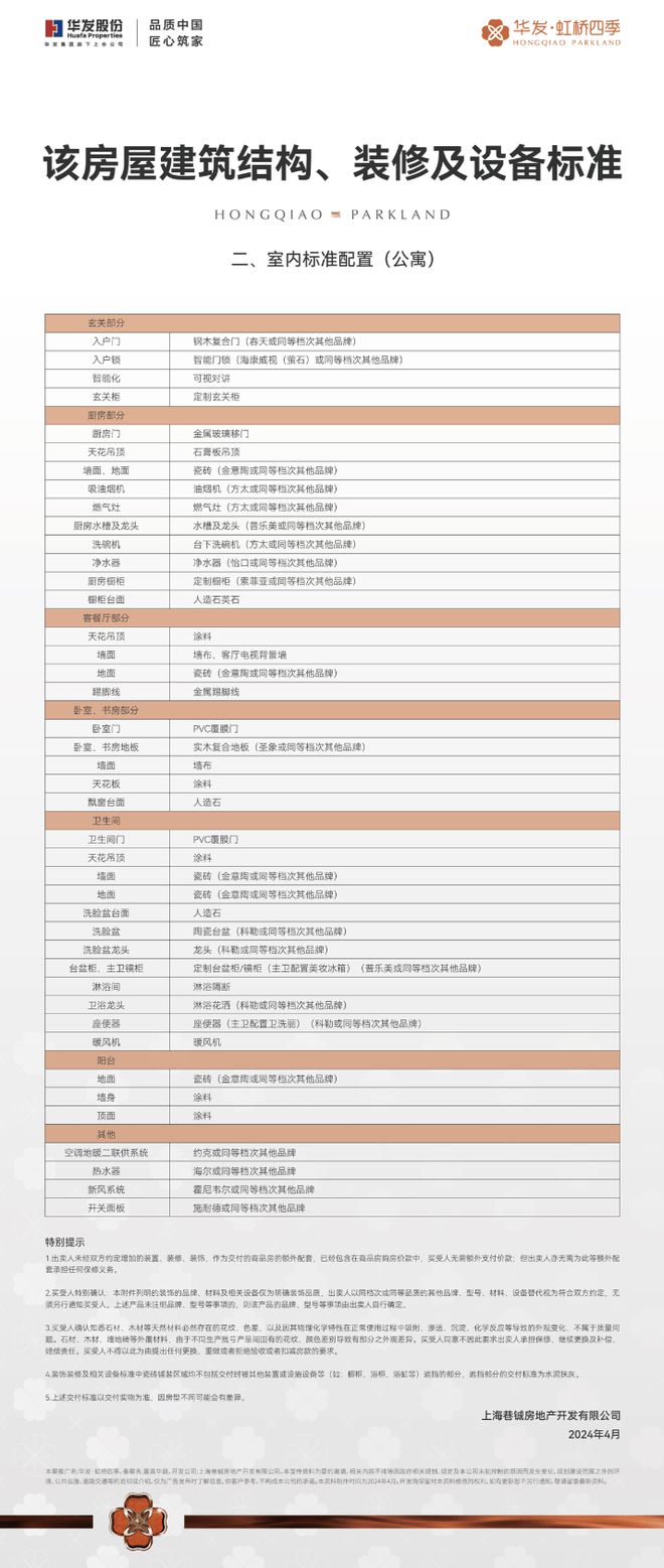 更有霍尼韦尔(或同等档次品牌)的新风、方太(或同等档次品牌)的油烟机和洗碗机、科勒(或同等档次品牌)的龙头和台盆、百年约克、圣象、施耐德等(或同等档次品牌)其他品牌国际一线品牌为生活保驾护航。