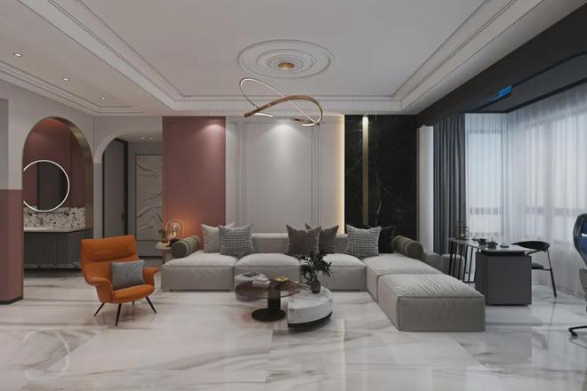 现代风格通过现代舒适与稳重兼具的气质,吸引了一些偏向成熟的人士的关注杏彩体育官网登录。比如高级灰、撞色、护墙板配理石这些设计搭配,就是现代风里经常见到的设计元素风格了。
