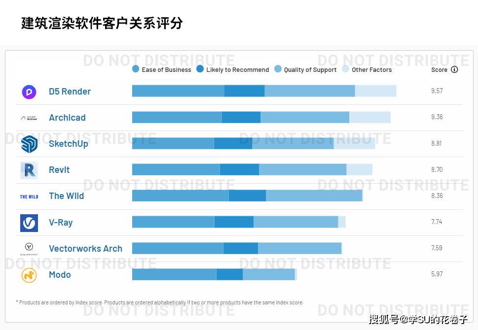 杏彩体育全球性软件评测平台 G2 Crowd 正式发布了2023年秋季软件报告,SketchUp、Revit、ArchiCAD、D5渲染器在建筑渲染软件的“客户满意度”和“市场表现”中获得更高的评分,其中 SketchUp 是全球范围内建筑设计师使用率最高的3D软件,国产实时渲染器 D5 是目前流行趋势最快、客户满意度最高的3D软件。