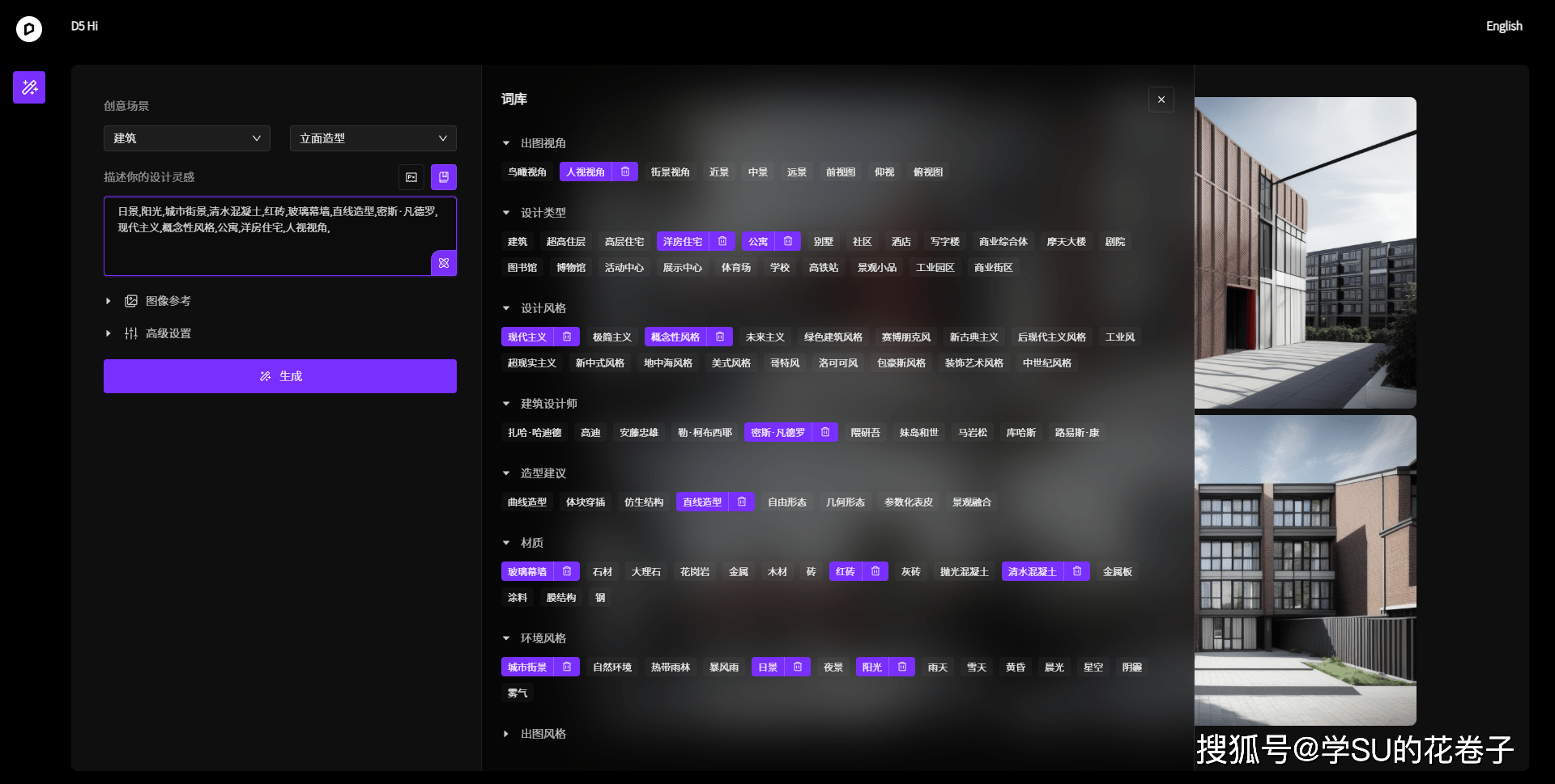 前不久D5又推出了 AI 工具——D5 Hi 和 D5 SR,能够生成设计意向图和加速图片渲染,进一步提升设计师工作效率。