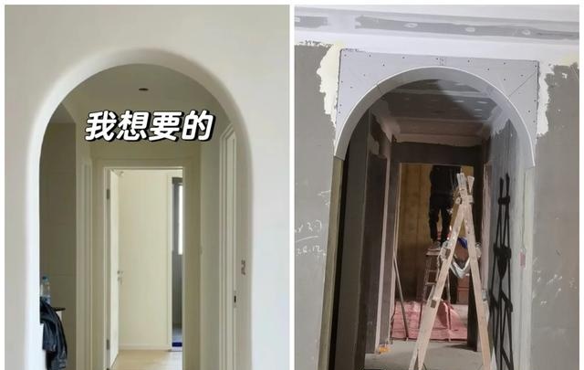 可当木工师傅把门洞做好之后,我产生了一种担心。因为参考图是弧角边,我家还是直角边。木工说弧角让油工做,可油工真的能做出来吗?