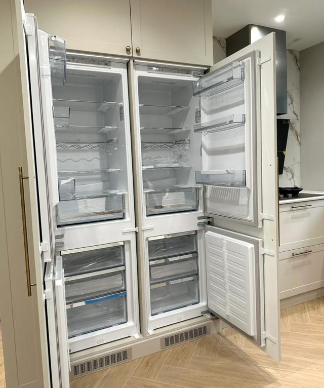 把冰箱嵌入到柜子里,算是现在一种流行的做法,所以很多人在定制柜子时,设计师都会让我们提前确认冰箱的尺寸。