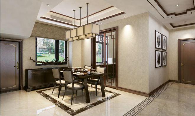 新中式风格讲究空间的层次感,其中屏风是中式风格中最具代表性的装饰元素,是现代家庭中应用最多的元素之一,能够将不同功能空间区分开来,并且现代中式风格设计利用不同的灯光照射来营造出理想的中式风格,也让空间层次感显得更加丰富。最后一些干净利落的线条交织再点缀以中式元素,使整体空间感觉更加立体有格调。