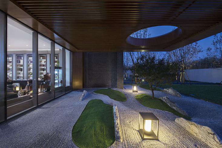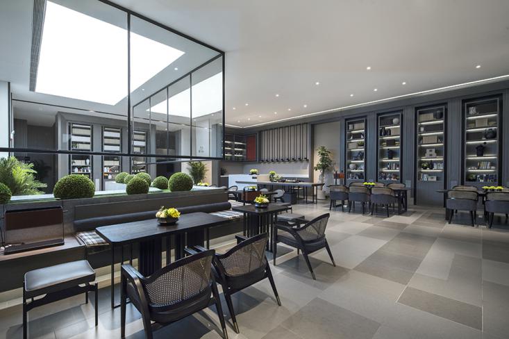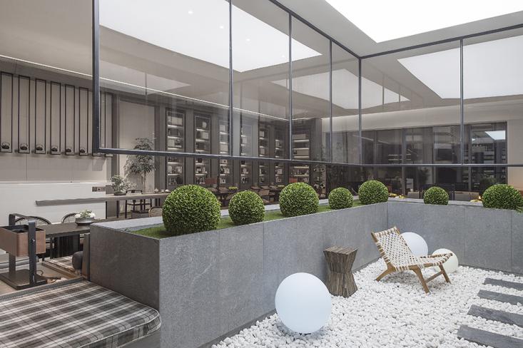 让自然,通过创造的小院在室内呈现;让景可亲近于人,通过引景让建筑语绘可触摸,更可体验,增加客户的归家感。