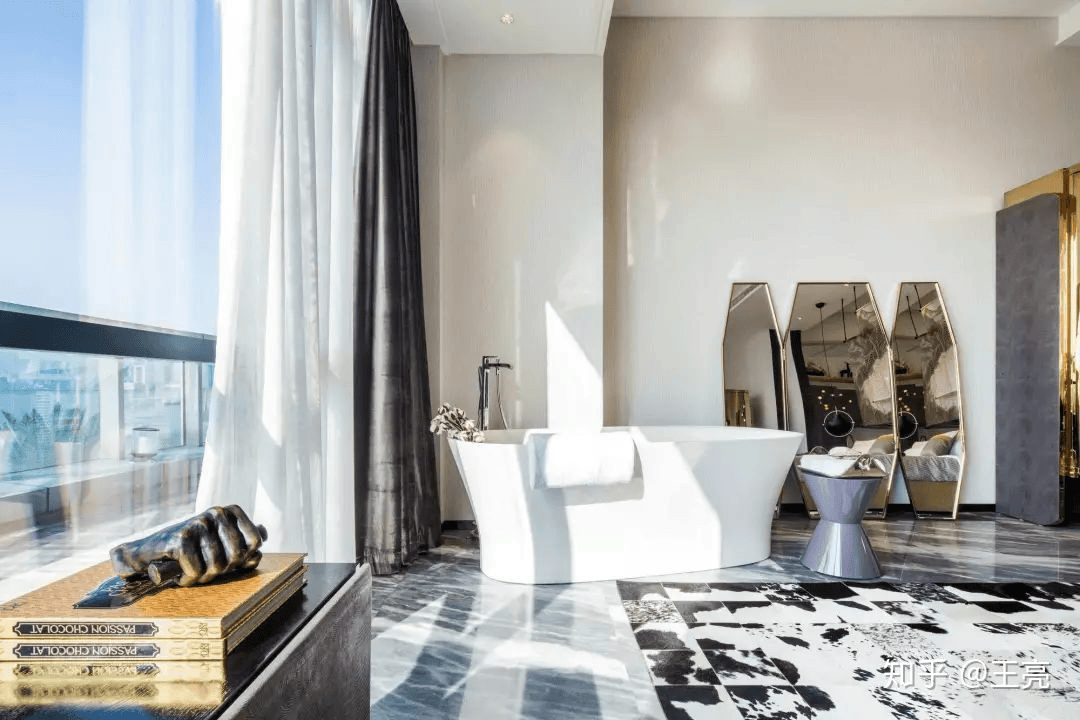 设计理念 :突出时尚和优雅,以时尚潮流融入生活沉淀下的品味来表现城市现代感,意味着与世界尖端接轨。陈德坚觉得做设计最重要的就是比例。这个比例不一定是形态比例,除了家具的比例,门的比例这些部件的比例外,最重要的就是整体的比例,感觉。设计的比例,灯光的比例,颜色的比例,你脑海中有多少整体的感觉,就像拍电影、写文章一样,不可能一直都是紧张的戏份,应该有个平衡,高低起伏、峰回路转。