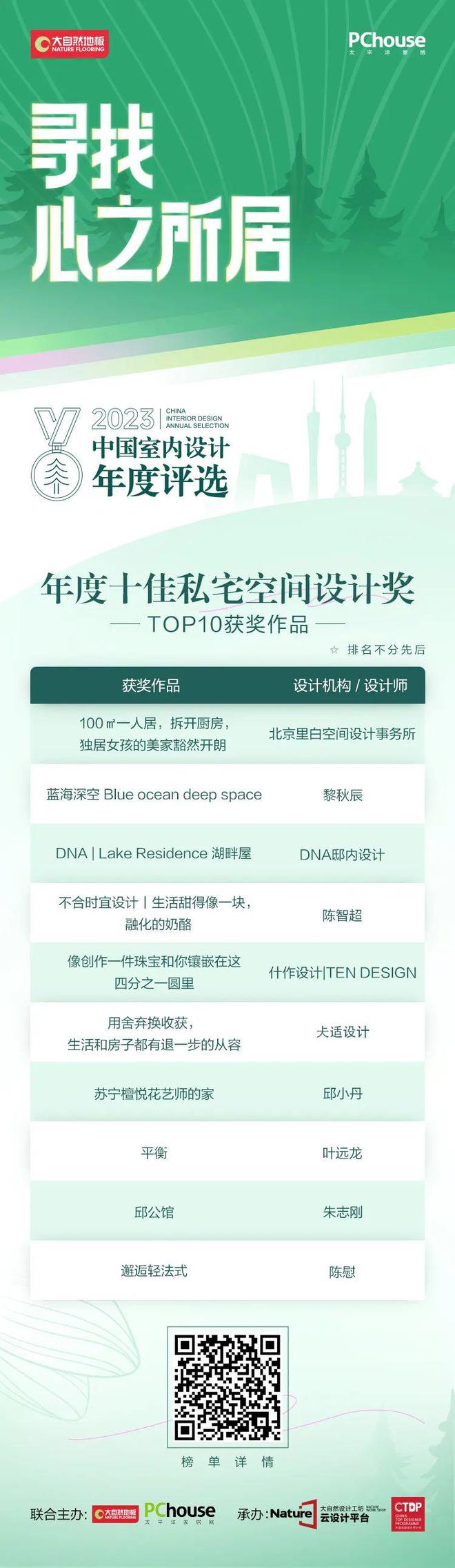 本年度选出的《寻找心之所居-2023中国室内设计年度评选》十佳私宅空间设计奖,是从全国参赛报名的3313套设计作品中,综合设计师/机构参赛作品创意设计、绿色环保、人文体验、可持续性杏彩体育、细节质感等表现进行实际评比考量,推选出的TOP10榜单。