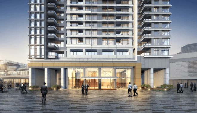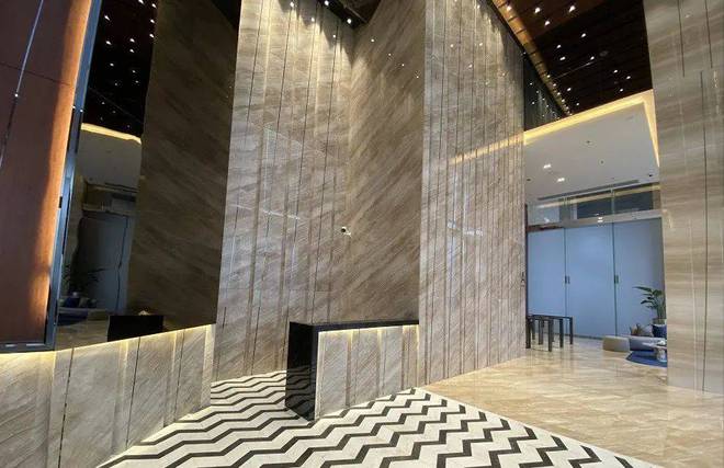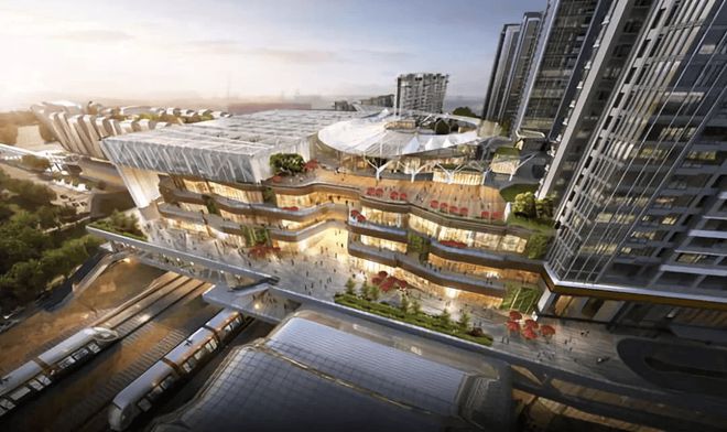 杏彩体育售楼处电线米,大堂层延续上盖项目的特色。设置在距离地面约14.5米高的大平台层位置,大堂和屋顶采用玻璃幕墙系统,建筑外立面采用系统窗和铝板幕墙相结合。