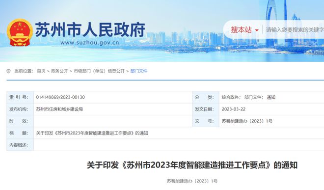 杏彩体育官网app近日,苏州市住建局印发《苏州市2023年度智能建造推进工作要点》(苏智能建造办〔2023〕1号)。