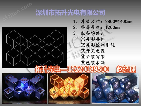 SMD常规显示屏做异形产品时会受到其箱体结构的限制,拼接异形有一点的缺陷,而且会有拼缝。赫尔诺异形LED透明屏可定制拼接*异形,曲面过渡自然美观,产品屏体可支持设置成圆柱、圆台、三角、弧形等各类异形。