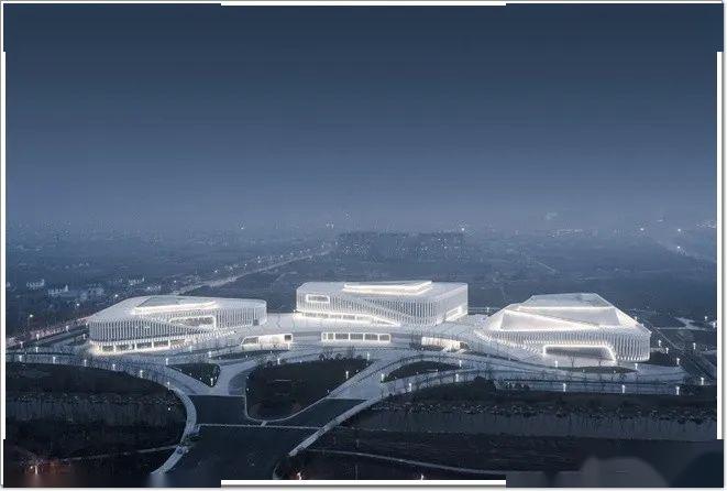 文化馆、图书馆、博物馆三馆独立运营,对内通过采光中庭、开放阅览空间、多主题的展览空间、多元化的培训用房、多功能剧场和报告厅等来营造市民交流与互动的文化氛围,复合了展览、观演、培训、亲子、阅览、休闲餐饮等功能,体现了文化的多元化和复合性。