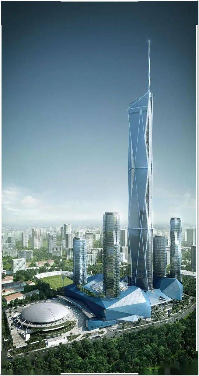 这是继广州、天津后,香港新世界集团打造的又一栋超级摩天楼,原设计高达648米!后调整为475米。