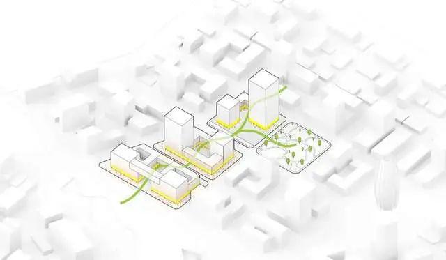 南北贯穿的中心绿轴,将三个建筑群紧密相连,并与东北侧的城市公园交相辉映,共同构建了一个生态与人文交融的园区杏彩体育。