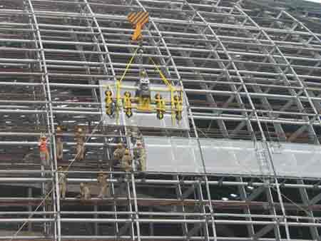 杏彩体育注册登录官网入口杏彩体育注册登录官网入口图二:国家大剧院北侧玻璃幕墙已经安装好5块玻璃。而工人们正在准备吊装第六块玻璃,为了安全起见,采用了吸盘和吊带两种方式固定玻璃。