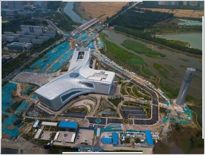 新馆建筑形态宛如黄河与洛河自然交汇形成的天然造型,彰显出源远流长的河洛文化,三个方向的延展走势,如同螺旋桨,寓意着河南腾飞、中原崛起。项目的竣工,将对推动中部地区科学文化传播,提升公共文化服务水平具有重要战略意义。