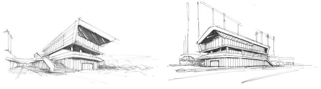 视觉倾斜且富有张力的三层屋面,将整个方舟的昭示性表达地更加极致,轻盈的结构和倾斜转折的建筑轮廓塑造了更独特的美学。