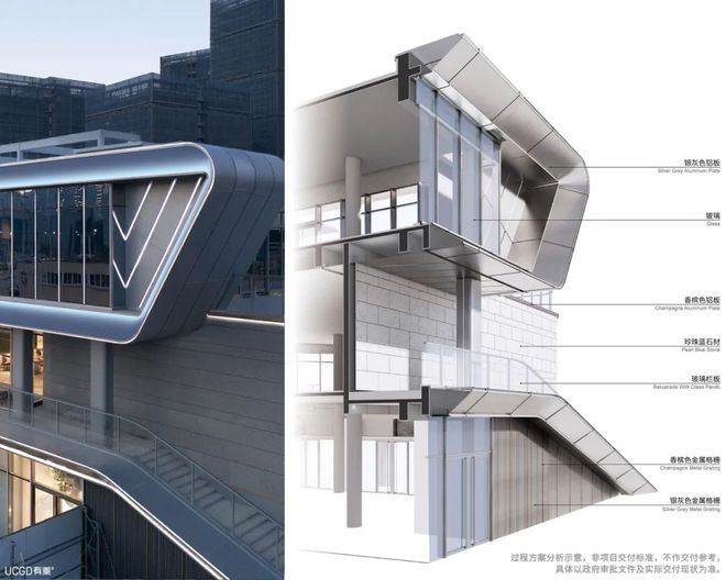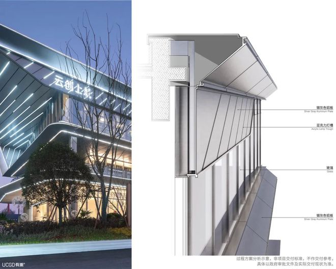 在这个颜值即正义的时代,云创上城推出新一代的公建化城市绝美封面。沿用市面豪宅通用的铝板幕墙做法,树立片区形象标杆。