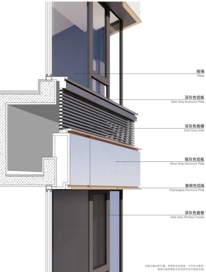“只有具有与价值感相关联的美感才是永恒的。”在多轮立面推敲过程后,我们通过群体空间组合体现整体造型艺术美。项目采用现代设计风格,注重比例控制及细节的刻画,采用金属干挂幕墙系统, 于细节中见品质。
