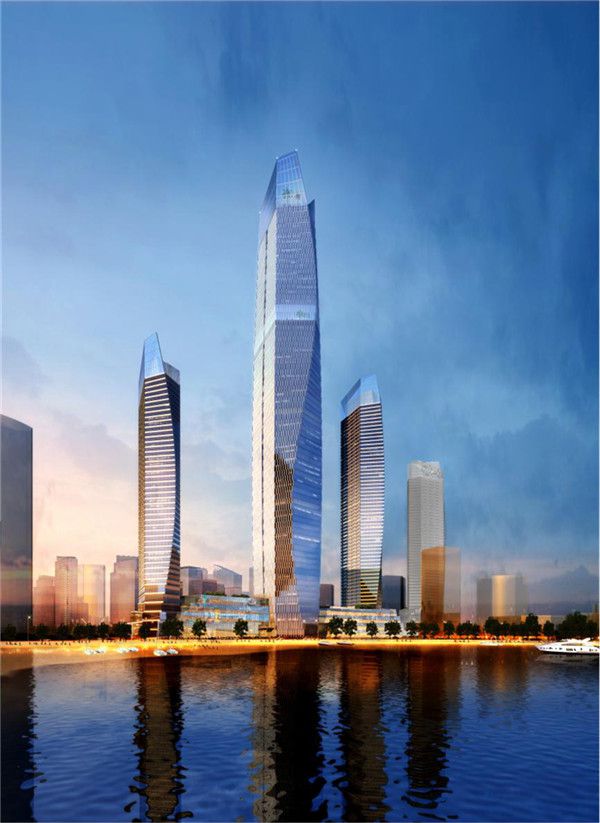 新落成的海天中心,地点在青岛市区的香港西路48号。海天中心由国际宴会及会议中心、酒店和高端海景公寓等区域组成,是集酒店、办公、会议、商务、公寓、观光、文娱等七大业态于一体的超高层城市综合体。新海天中心延续老海天“六边形”的平面形式,各塔楼每层南北端点按波浪形做有节律的摆动,将青岛的海洋元素巧妙地转化为设计语言。
