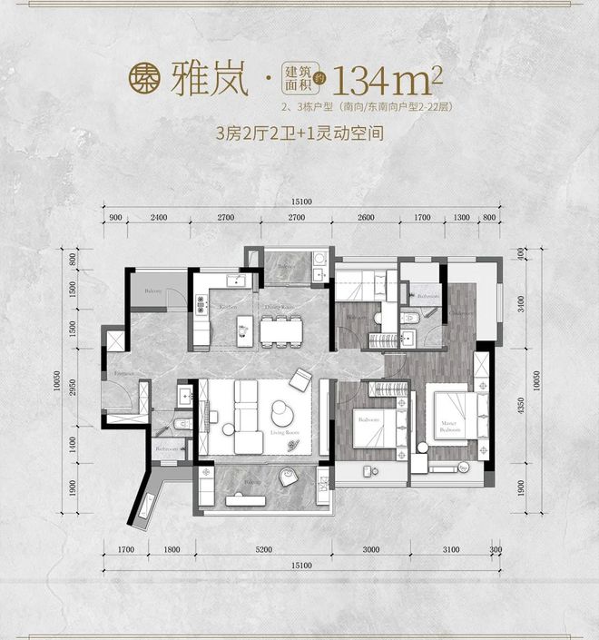 建面约134㎡约5.2m客厅开间,约22.1㎡LDK奢阔端厅,约27.5㎡主卧空间,带步入式衣帽间,突显主人的尊贵享受。