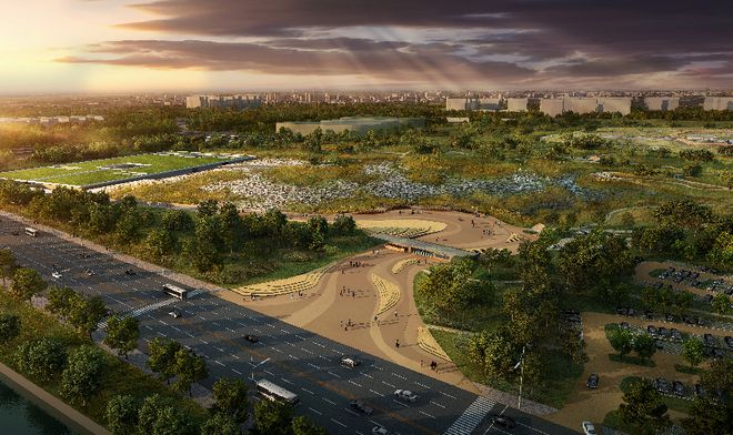 博物馆整体为下沉式“折叠时空”的建筑设计,层高超过8米,杏彩体育登录屋顶将和地面齐平。这样的设计既可以使博物馆整体外观与遗址公园地面融为一体,也可以保护距今7000年的仰韶文化遗址。