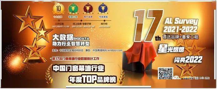 创新力、创造力、市场数据、发展潜力——10万+AL平台,大数据助力行业品牌2022星光闪亮……中国幕墙网有房地产业、建筑业、建筑门窗幕墙行业内超十万人的AL平台,为优秀品牌的评选提供了行业最大规模、最权威数据、最荣耀的T台!
