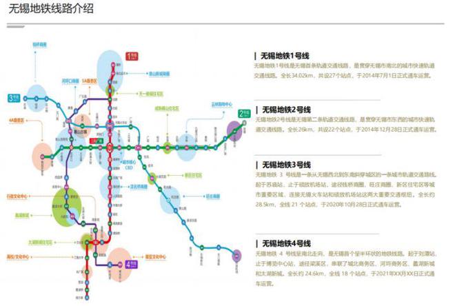 无锡地铁4号线 号线呈南北走向,是无锡首个呈半环状的地铁线路。起于刘潭站,止于博览中心站,途径梁溪区,串联了城北商务区、河埒商务区、蠡湖新城和太湖新城。全长约 24.6km,全线年XX月XX日正式通车运营。
