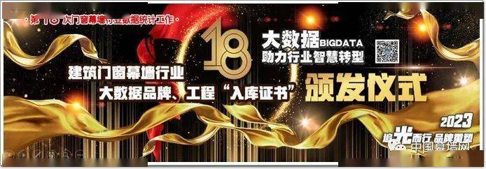 品牌荣耀 再创辉煌|2023年4月6日第29届全国铝门窗幕墙行业年会在广州威斯汀大酒店隆重召开。年会上,“大数据品牌入库评选活动”举行了隆重的颁发仪式。