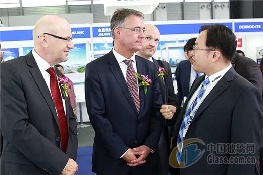 北玻股份玻璃板块天津玻璃公司、上海玻璃公司、洛阳玻璃公司、北京玻璃公司由北玻股份总裁高理先生带队杏彩体育,参加了本次行业盛会。开幕靠前天,德国国务秘书Adler、上海市住房和城乡建设管理委员会副巡视员朱剑豪、欧洲门窗协会会长Hauk先生及夫人以及德国慕尼黑集团Peputy CEO Dr.Reinhard Pfeiffer等组成的庞大代表团来到北玻展台,高理总裁接待并详细介绍了公司和此次参展展品的情况,尤其是北玻为幕墙市场带来的超大钢化玻璃产品和幕墙设计的创新空间,得到代表团由衷的赞叹。