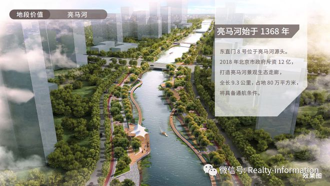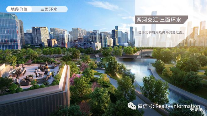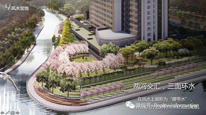 项目被两河交汇,分别是东侧的北护城河及南侧的亮马河,两河均有数百年的历史,在我们项目东侧交汇,形成了一个三面环水的半岛地市,风水和地势上占据了一个绝佳位置。