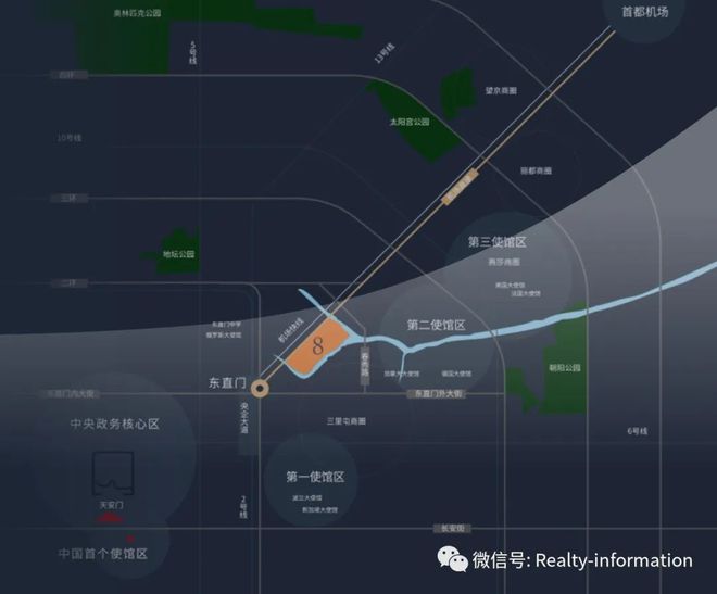 从城市空间的宏观角度来看,北京·东直门8号位踞第二使馆区核心之位,处于东直门商圈、燕莎商圈、三里屯商圈之间,擎领“东富西贵”的当代传奇;而在区域地段的微观角度上,项目紧邻东二环,依水而居,出繁入谧,由地段决定的高端价值,踏遍京城亦难寻。