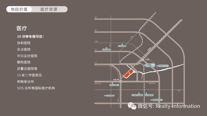周边医疗:朝阳医院、总医院、朝阳中医院、北京儿研所、北京妇幼保健院、东直门医院、和睦家医疗机构等