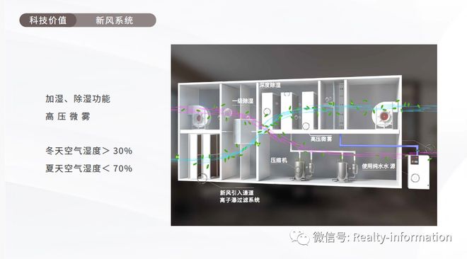 置换新风系统是四级过滤防雾霾系统。可以有效去除90%的pm2.5,使室内空气更洁净,除此之外还有加湿功能,保证常年恒湿效果。夏季90分钟置换一次、冬季120分钟置换一次