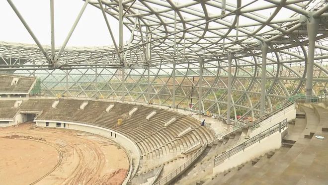杏彩体育位于巴中经开区的市体育中心,因其独特的钢架结构外形,被称为巴中版鸟巢。近日,记者再次探访市体育中心,了解工程的最新进展情况。