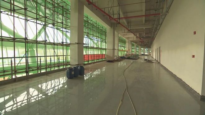 记者 苟文婷:目前市体育中心内部地板铺设已经全部完成了,墙面粉刷已经完成了百分之九十,那么下一步施工方还将对体育中心内部的装饰装修工程进行进一步的完善和处理。